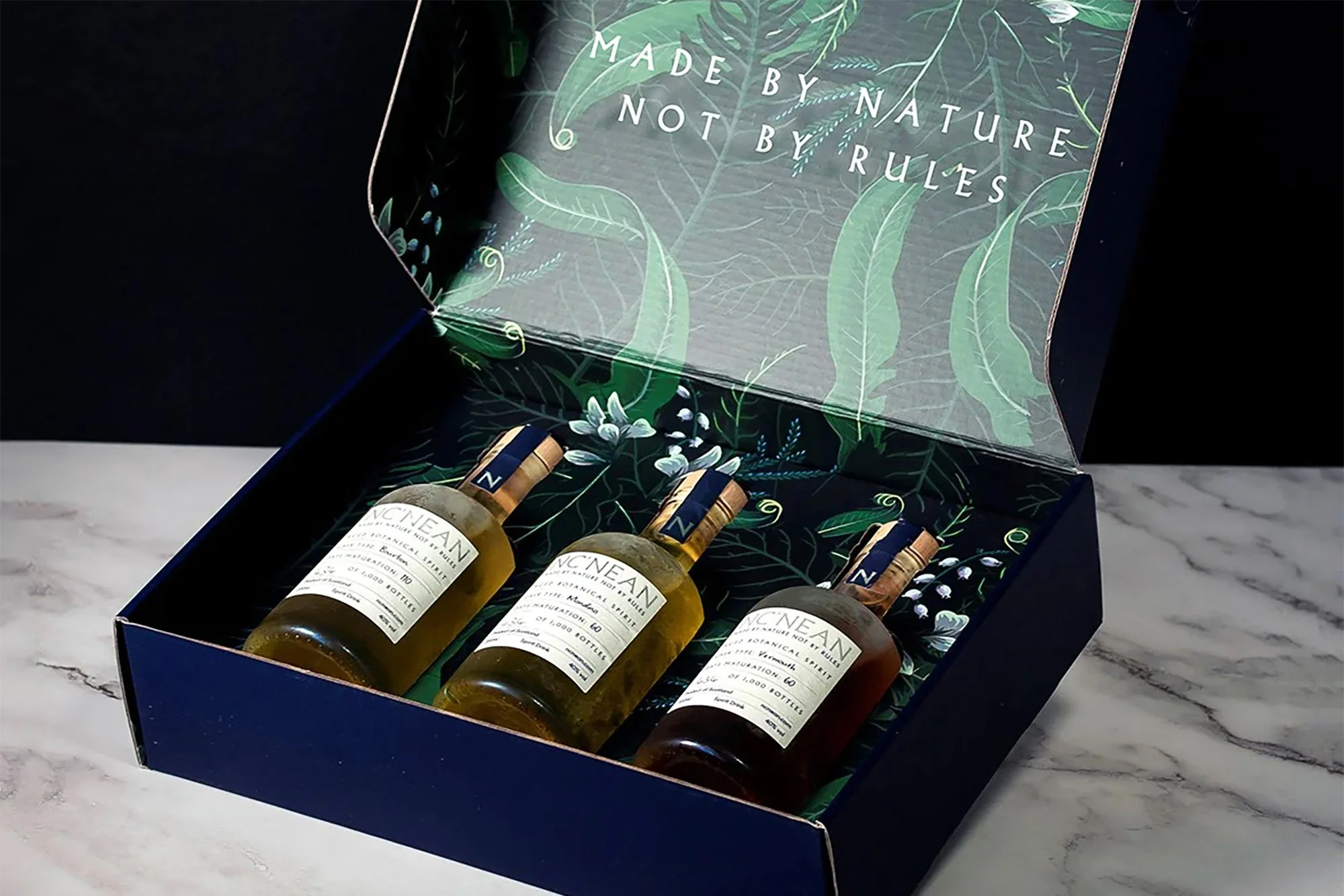 Concepts and design for a trio of barrel-aged Botanical Spirits. Each cask adds a unique flavour profile, creating spirits that will liven up your favourite drinks. The perfect tasting set for an experimental spirits drinker or cocktail aficionado.